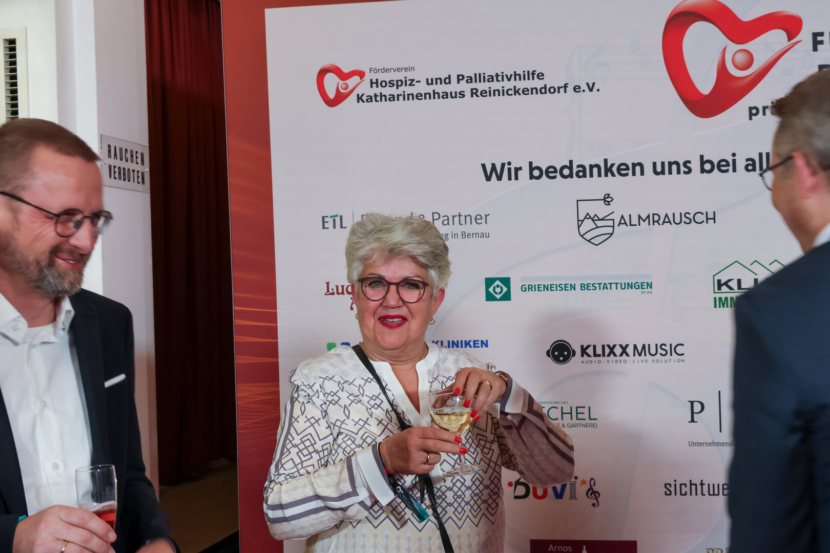 "Als Botschafterin des Fördervereins des Hospizes Katharinenhaus empfinde ich tiefen Dank und Freude, Teil dieses großartigen Engagements zu sein. Bei unserer letzten Benefizveranstaltung sind viele Menschen mit großem Herz zusammengekommen, um sich für die Bewohner des Katharinenhauses einzusetzen. Es war bewegend zu sehen, wie viel Unterstützung aus dem Publikum kam, um den schwerstkranken Gästen des Hospizes würdige und erfüllte letzte Tage zu ermöglichen. Mein besonderer Dank gilt dem Förderverein und seinem engagierten Team sowie Hospizleiter Martin Wiegandt und seinem gesamten Team. Ohne ihren unermüdlichen Einsatz wären diese wundervollen Aktionen und Aktivitäten, die sowohl den Bewohnern als auch den Menschen mit großem Herzen, die wir an dem Veranstaltungsabend erreichen durften, nicht möglich gewesen. Ein herzliches Dankeschön richte ich auch an den über die Stadtgrenzen hinaus bekannten und geschätzten RBB-Abendschau-Moderator Volker Wieprecht. Mit Eleganz, Esprit und tiefer Demut gegenüber dem Thema führte er durch das gesamte Programm und verlieh dem Abend einen wunderbaren Rahmen."